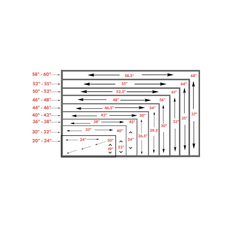 | Option | 20-24 inch, 30-32 inch, 36-38 inch, 40-42 inch, 46-48 inch, 50-52 inch, 52-55 inch, 58-60 inch |