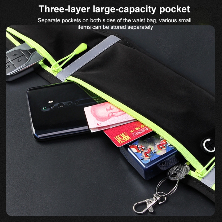 7. Features: beautiful and practical, three-layer large capacity, multi-pocket design, various small items can be placed separately, comfortable to wear, delicate feel, waterproof and non-slip, breathable perspiration, with earphone hole, waist position can be adjusted freely, with reflective strip Night running is safer, the zipper is smooth and durable