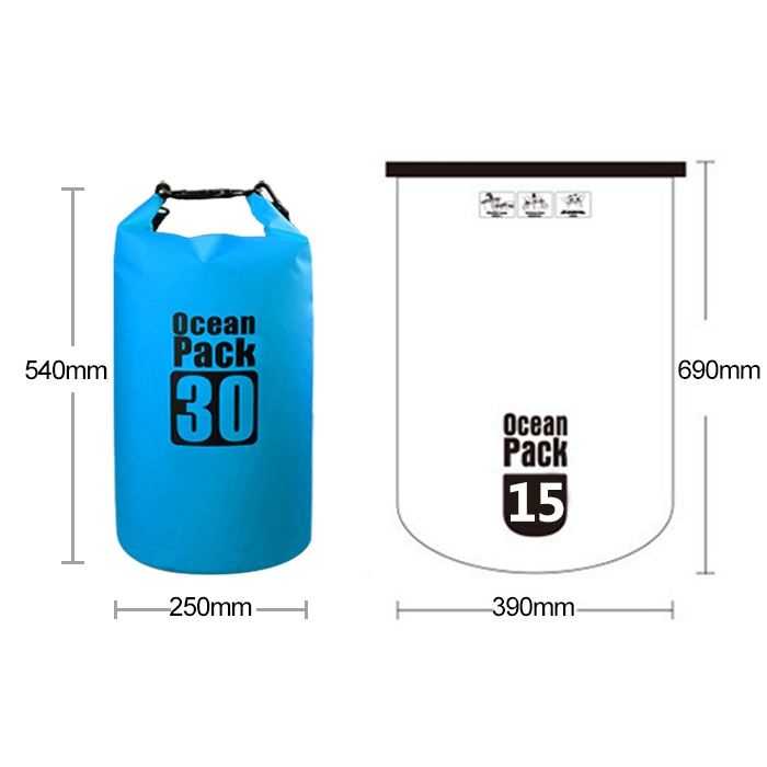 Outdoor Waterproof Double Shoulder Bag Dry Sack PVC Barrel Bag, Capacity: 30L