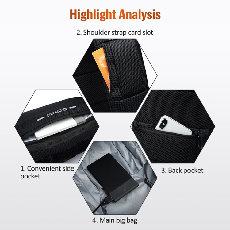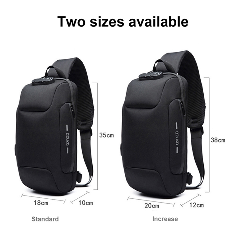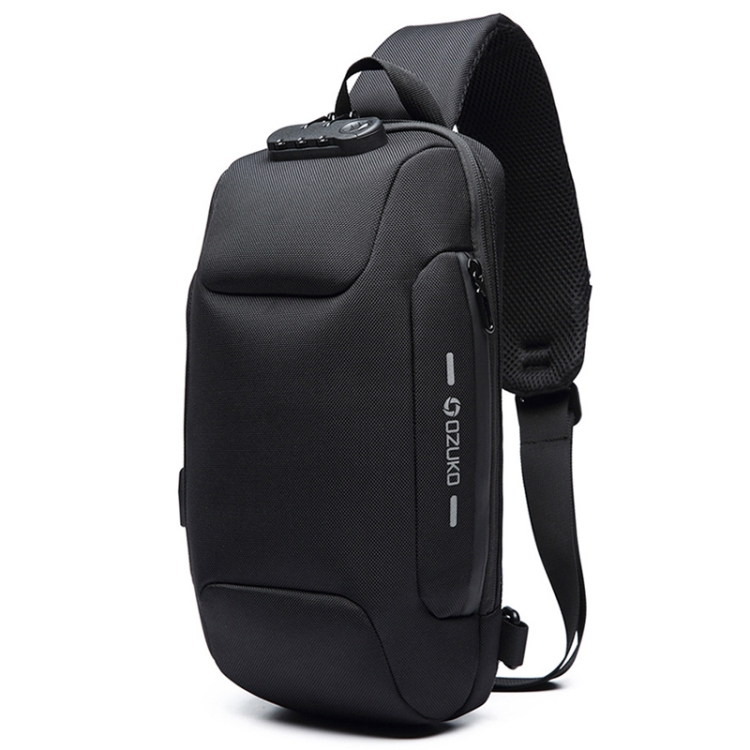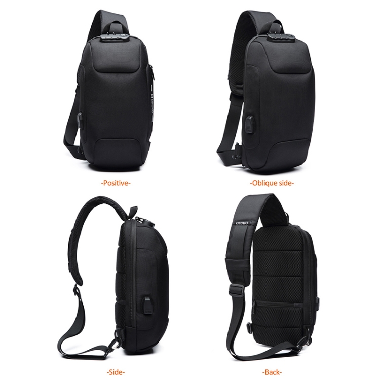 OZUKO 9223 Anti-theft Men Chest Bag Waterproof Crossbody Bag with External USB Charging Port