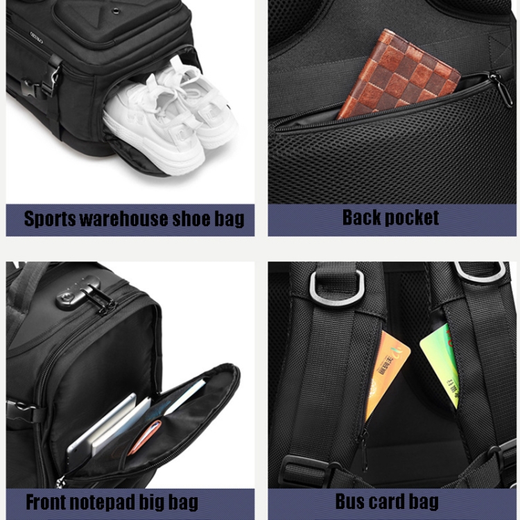 7. Features: security and anti-theft, multi-layer storage space, light carrying, USB charging, water-repellent fabric