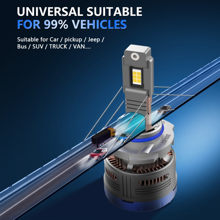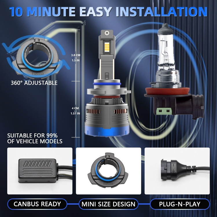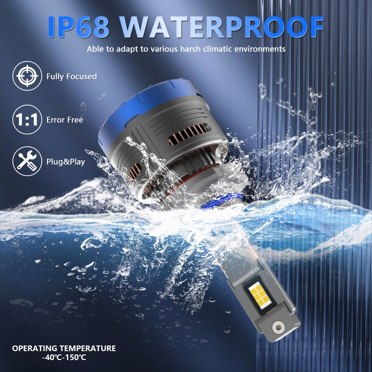 4. The bulb uses six high-efficiency CSP-3570 LED chips, with a service life of up to 50,000 hours and an illumination of 600W 6500K per pair. The luminous flux reaches 80000 lumens per pair, brighter than holographic bulbs. Each LED provides extremely bright white light, which helps to clearly see signs and obstacles in advance, (an additional layer of oil film is attached to the surface of the lamp beads, which makes the color temperature of the headlights more stable and effectively reduces light decay).