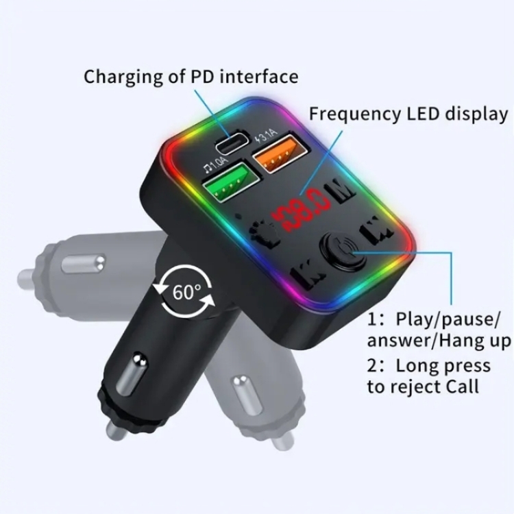 P22 Support MP3 Player USB Port Bluetooth FM Transmitter in-Car Adapter PD Car Charger