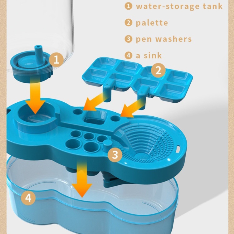 2. Built-in water circulation system, just press a button to recycle dirty water and let clean water flow out for reuse, so you don’t get your hands dirty or waste water, you can focus on painting!