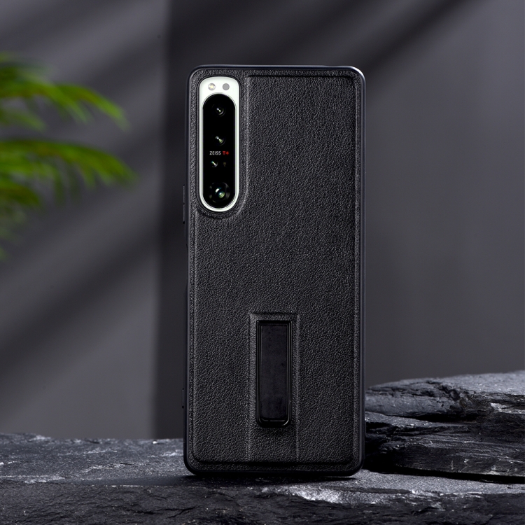 PC + Leather Texture Protective Phone Case with Metal Holder