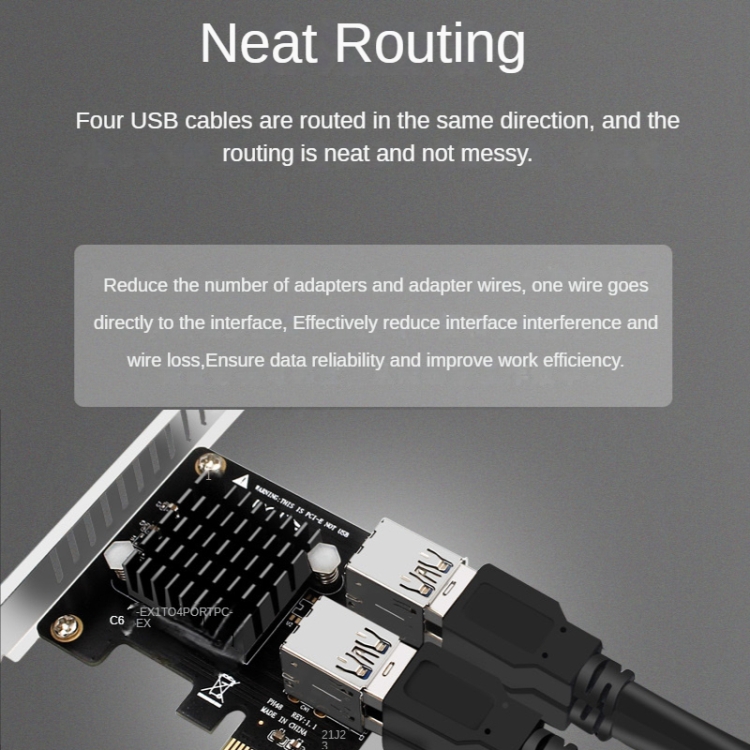 2. The 4 USB cables are routed in the same direction, the routing is neat and not messy