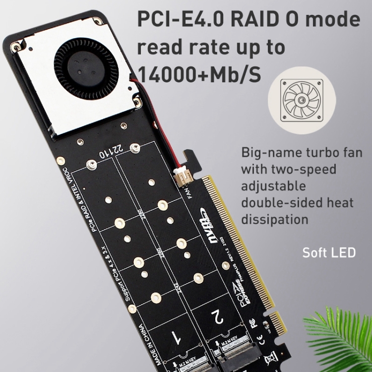 PCIe X16 to M.2 M-key NVMEx4 SSD RAID Converter Card