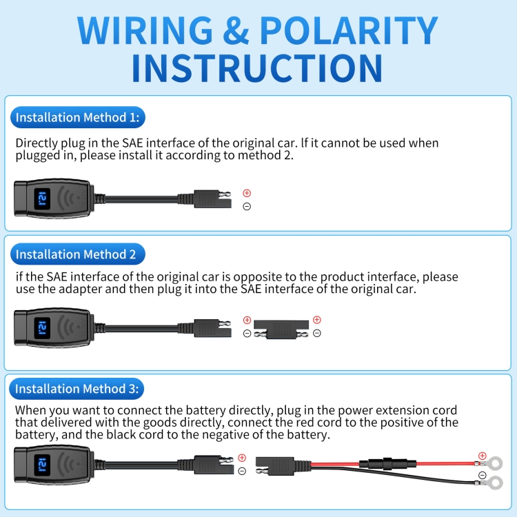 PD3.0 Motorcycle USB Mobile Phone Charger Digital Voltage Meter with Switch