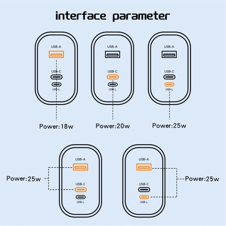 6. Shunt design: When charging through a single interface, it is fast charging, and when charging through two interfaces simultaneously, it will split and become slow charging.