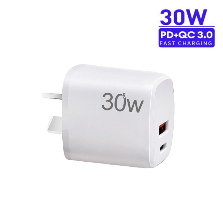 PD30W USB-C / Type-C + QC3.0 USB Charger with 1m Type-C to 8 Pin Data Cable, AU Plug