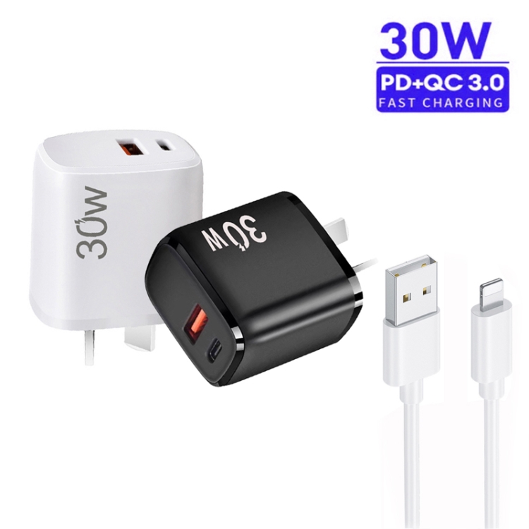 PD30W USB-C / Type-C + QC3.0 USB Charger with 1m USB to 8 Pin Data Cable, AU Plug