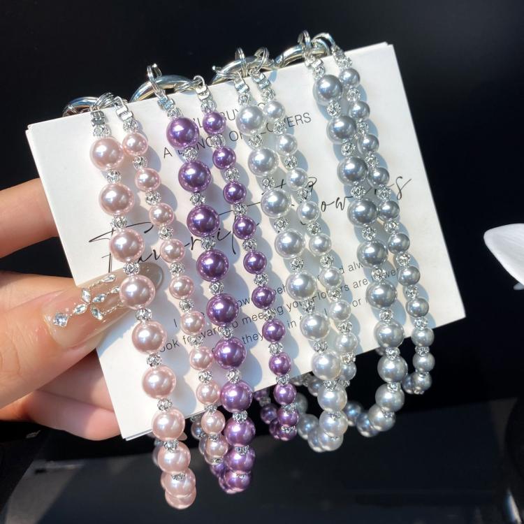 Pearl DIY Cell Phone Lanyard Double Chain Beads Lanyard Wrist Delicate Bag Charms