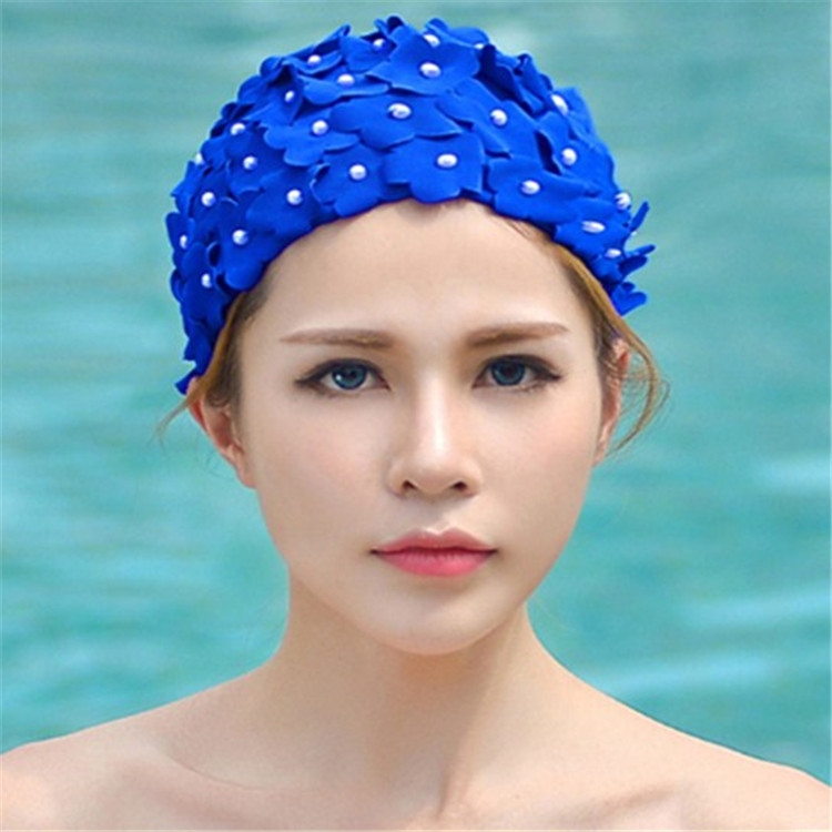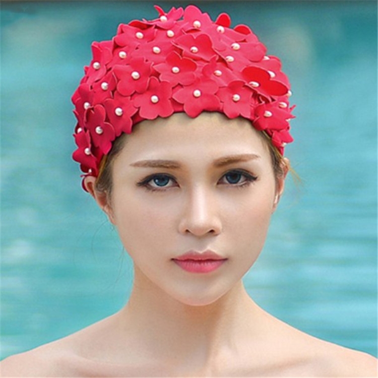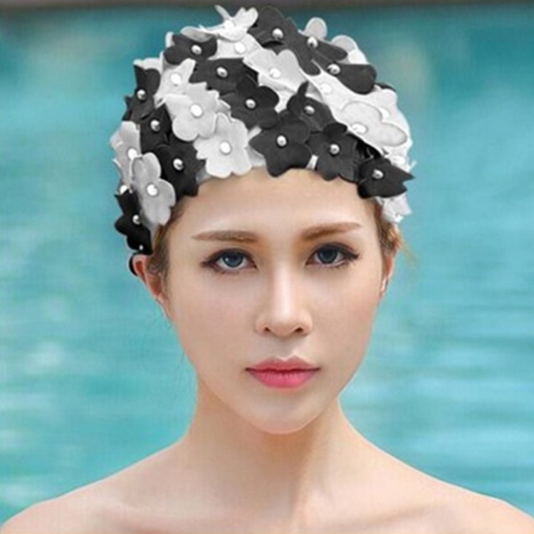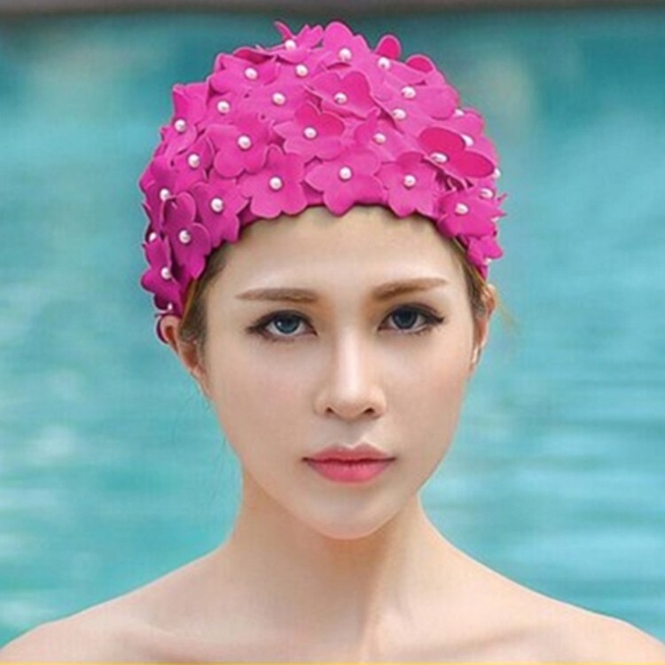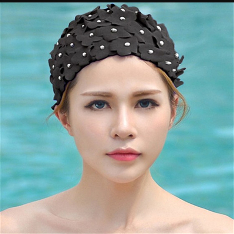 Pearl Three-dimensional Handmade Flower Swimming Cap for Women