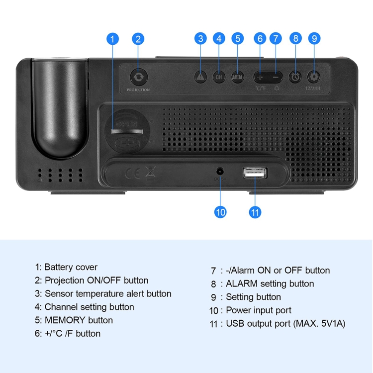 5. Projection clock size: 204 x 82 x 37.5mm