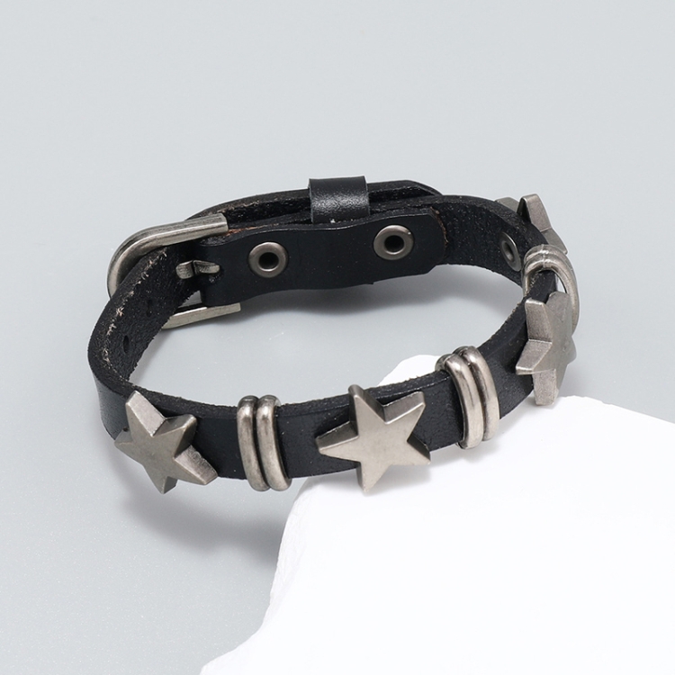 Personalized Street Punk Style Bracelet Pentagram Vintage Cowhide Bracelet