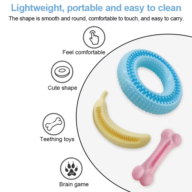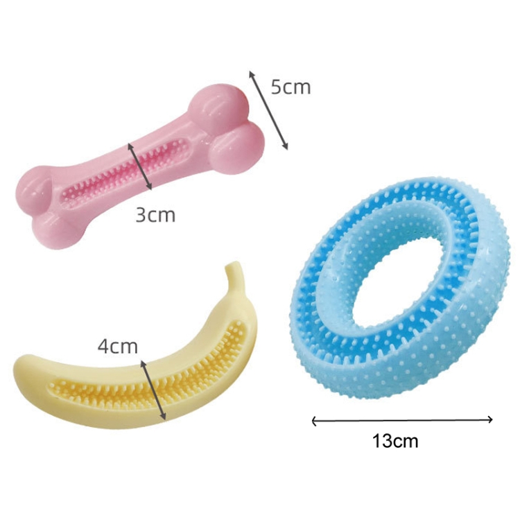8. Size: round 13 x 2.3cm; bone 14 x 5 x 2cm; banana 15 x 4 x 3cm