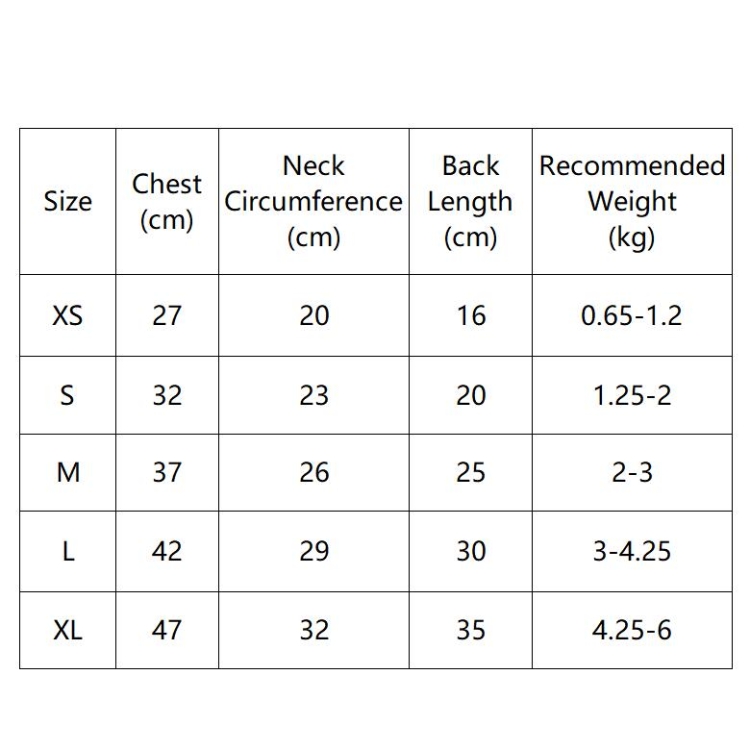 3. Size: XS/S/M/L/XL