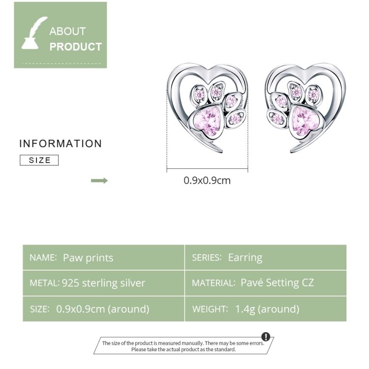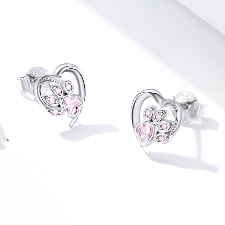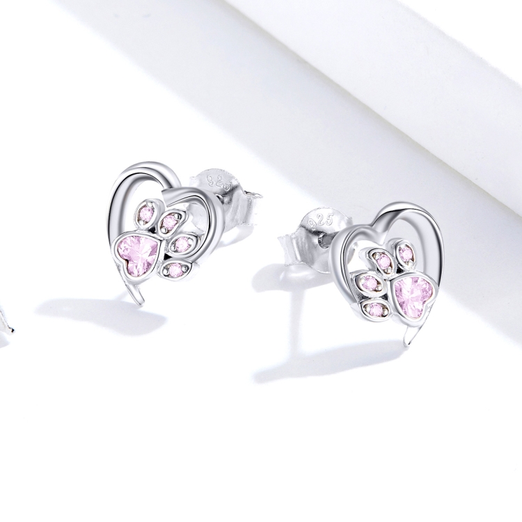Pet Paw Print Earrings Platinum-plated Love Heart-shaped Girls Earrings