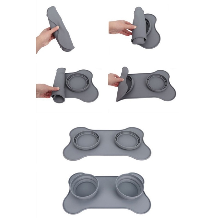 Pet Silicone Folding Bowl Mat Non-Slip & Bite Resistant Portable Feeding Bowl