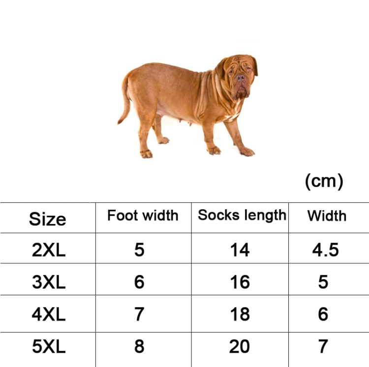 6. 2XL: foot width 5 cm, socks length 14 cm, width 4.5 cm