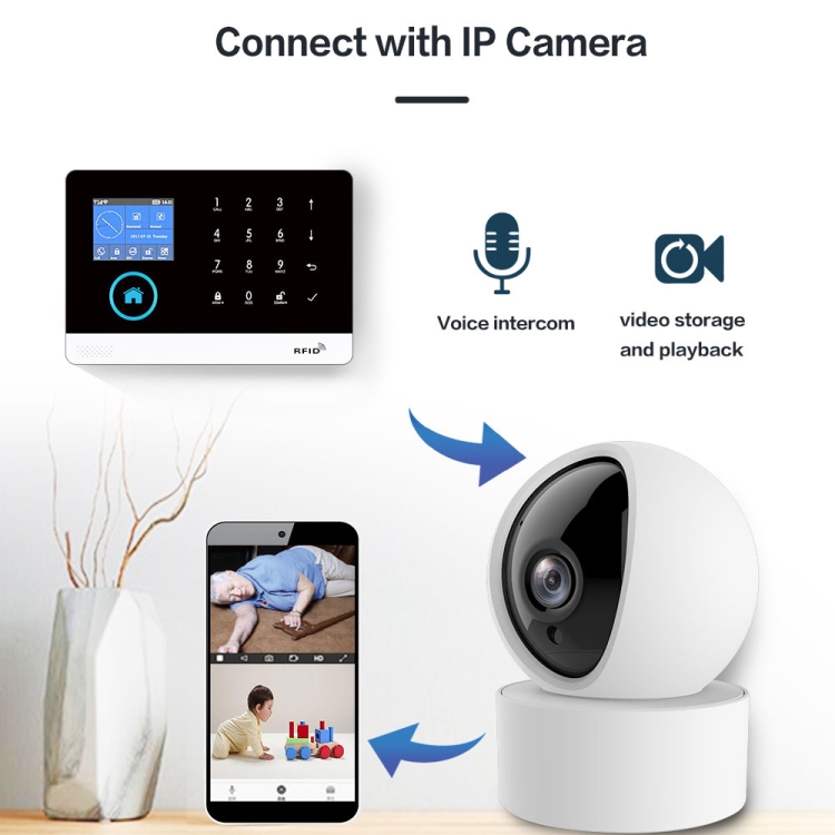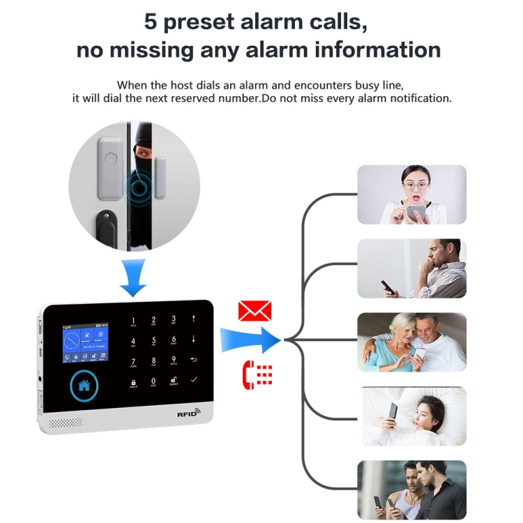 1. WiFi+GSM alarm system, supports multiple alarm notification channels, like APP push/ SMS/ voice phone call, etc.