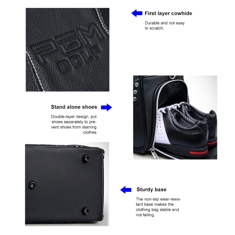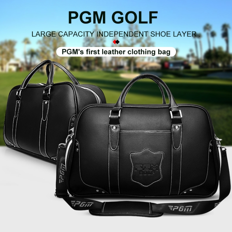 PGM Golf Portable Large Capacity Genuine Leather Ball Bag Clothing Bag for Men, Built-in Shoe Bag