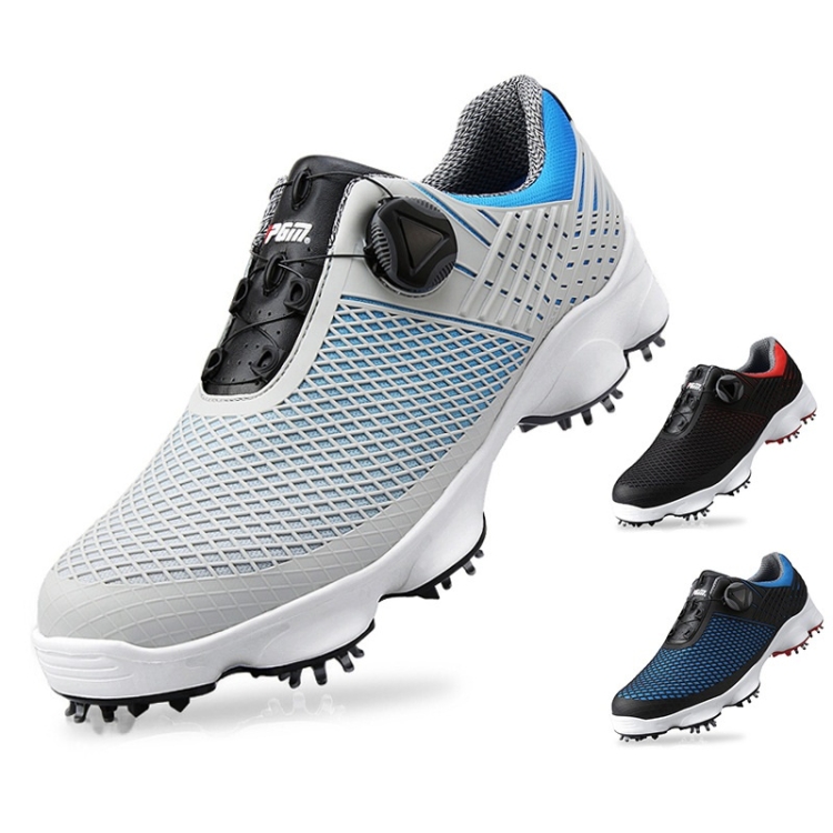 PGM Golf Waterproof Microfiber Leather Wide Sole Rotating Shoelaces Sneakers Outdoor Sport Shoes for Men(Color:Grey Blue Size:44)