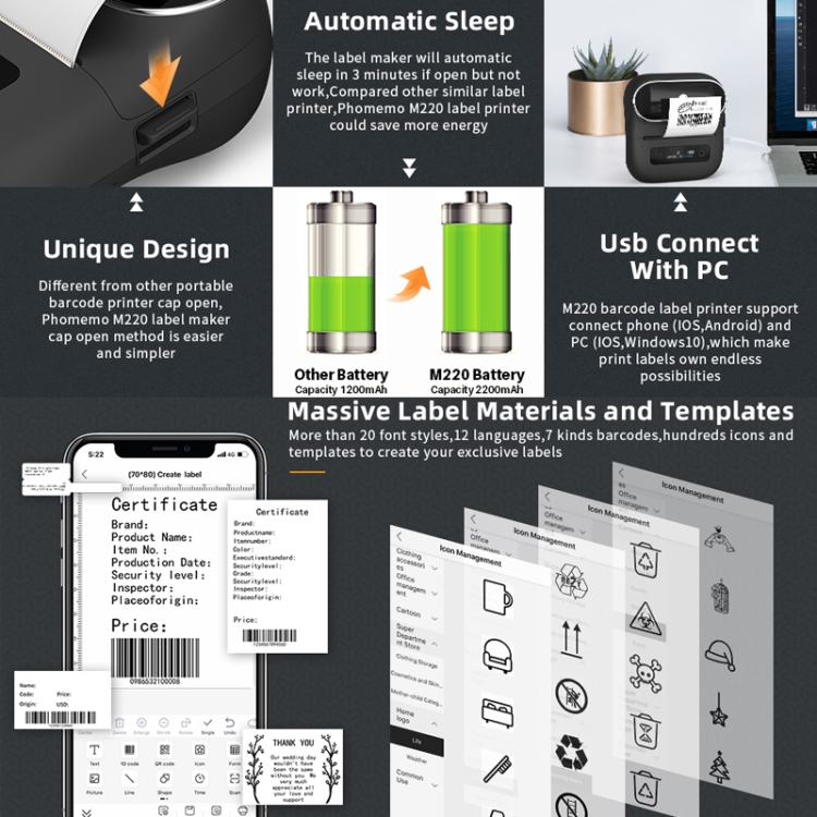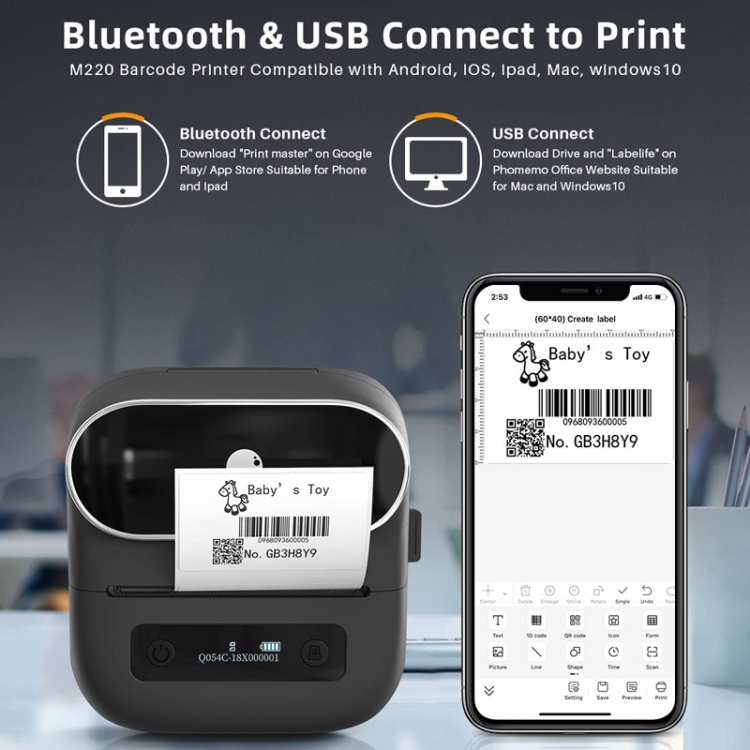 Phomemo M220 Jewelry Clothing Tags Bluetooth Thermist Strip Tag Printer