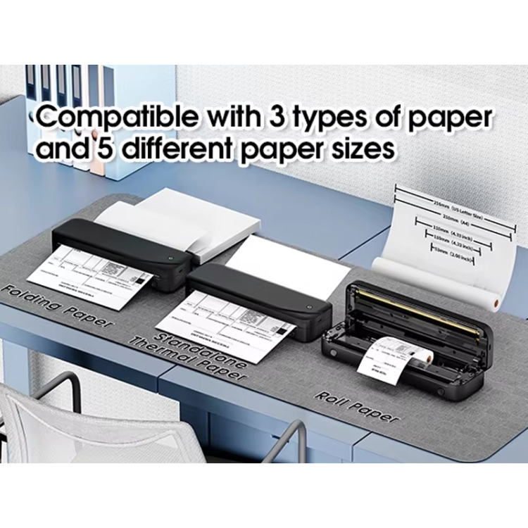 3. Support 5 sizes and 3 paper types: Phomemo mobile portable printer supports a variety of sizes, including 8.5” x 11” US Letter, A4, 4.33”, 3.15” and 2.09” thermal paper. It also supports roll, folded and ordinary thermal paper types, suitable for a variety of scenarios, such as notes, exams, game cards, DIY projects, diaries, receipts, documents, contracts, etc. Whether you are a business traveler, teacher, truck driver, student, or small business owner, this printer can meet your needs.
