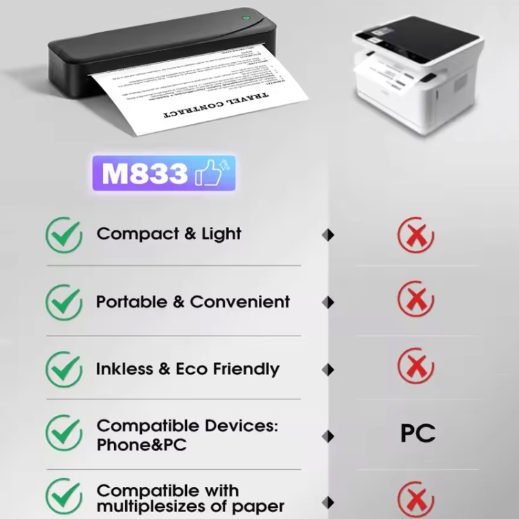 1. Phomemo M833 upgraded mobile portable printer, 300 dpi print clarity is 60% higher, providing excellent print quality. This wireless and lightweight printer weighs only 690, easy to carry.