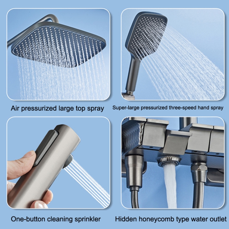 2. Air pressurized large top spray, super-large pressurized three-speed hand spray, one-button cleaning sprinkler, hidden honeycomb type water outlet