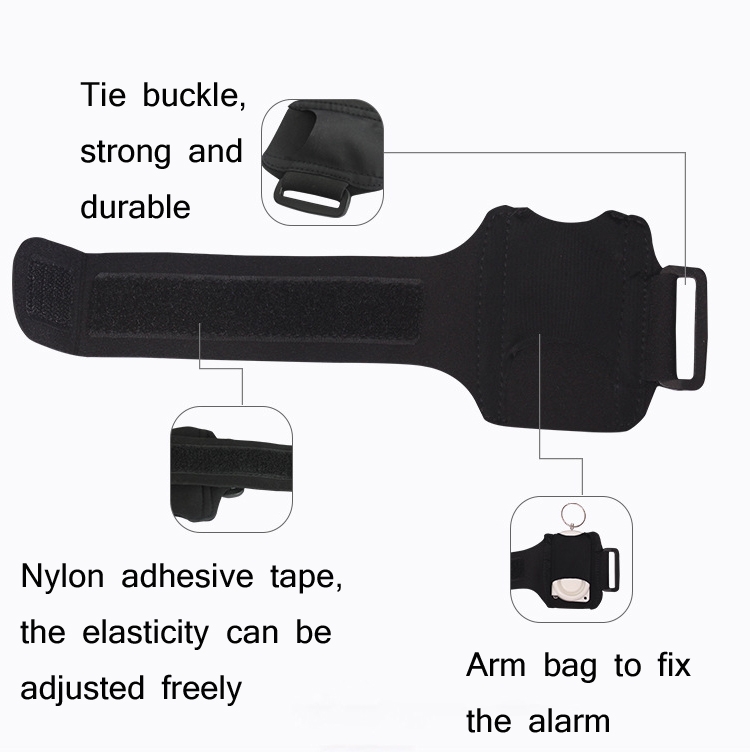11. Size: alarm 7.5x4x1 cm, wrist strap around 23×8 cm (adjustable)