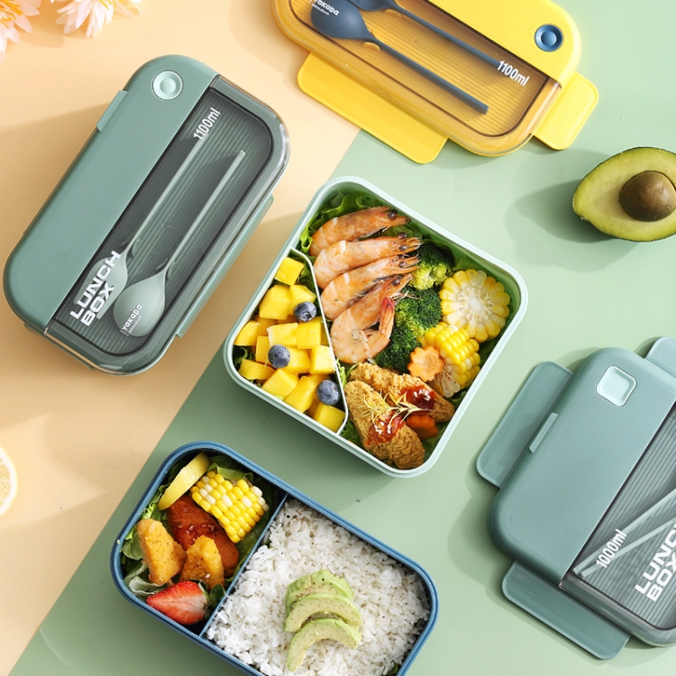 Plastic Compartment Lunch Box Microwaveable with Tableware, 1L Blue, 1L Green, 1.1L Blue, 1.1L Green