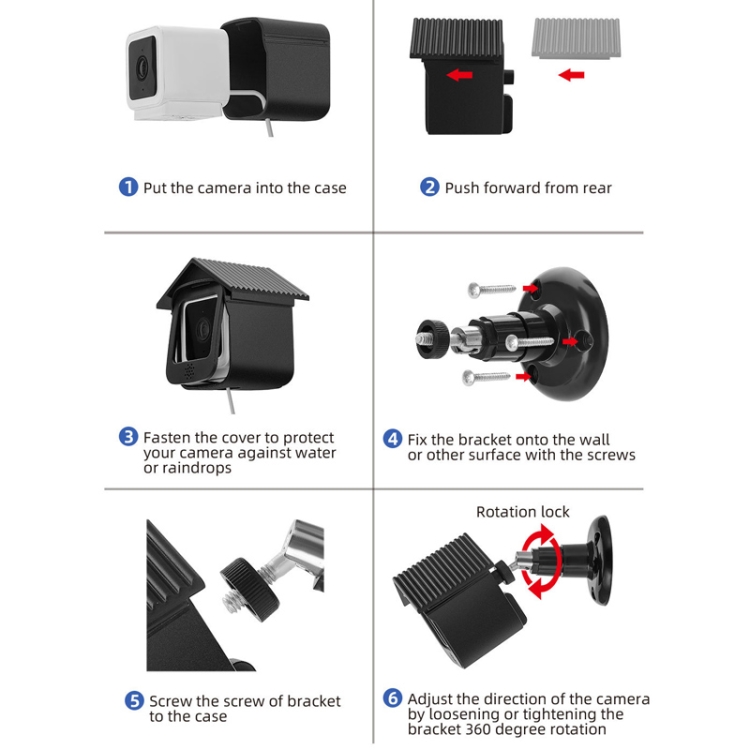 4. Just put your camera into the cover bracket and fix it with screws, you can mount the camera in your preferred position and angle.