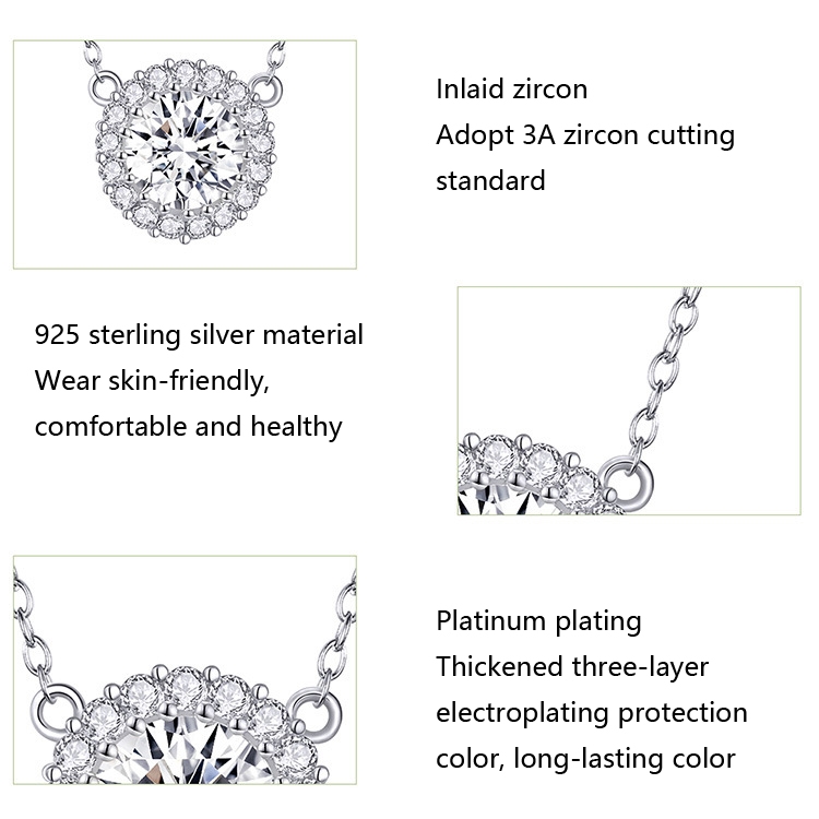 Platinum Plated Zircon Necklace S925 Sterling Silver Simple Female Necklace