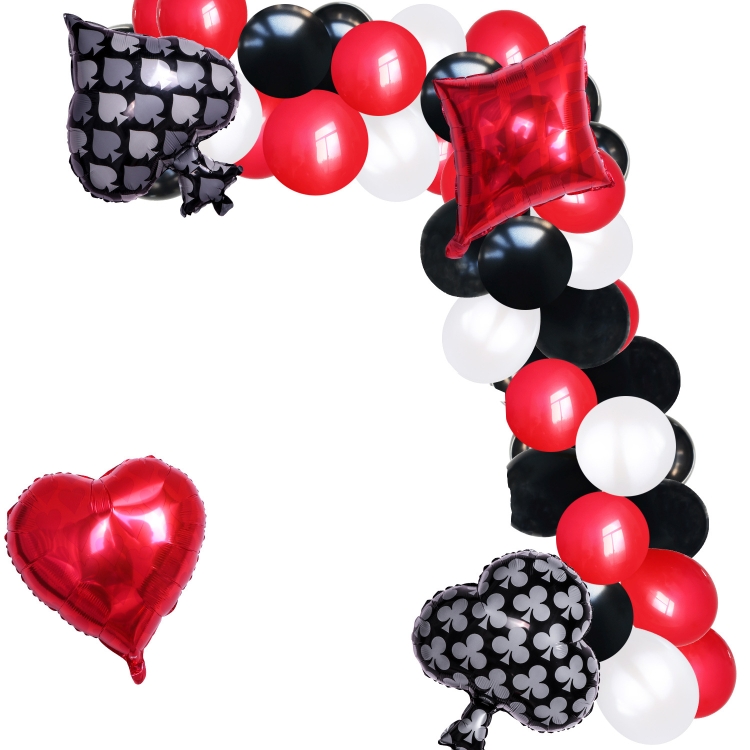 Playing Cards Balloon Decoration Round Latex Aluminum Foil Balloon Decoration Set Playing Cards Balloon Party Decoration