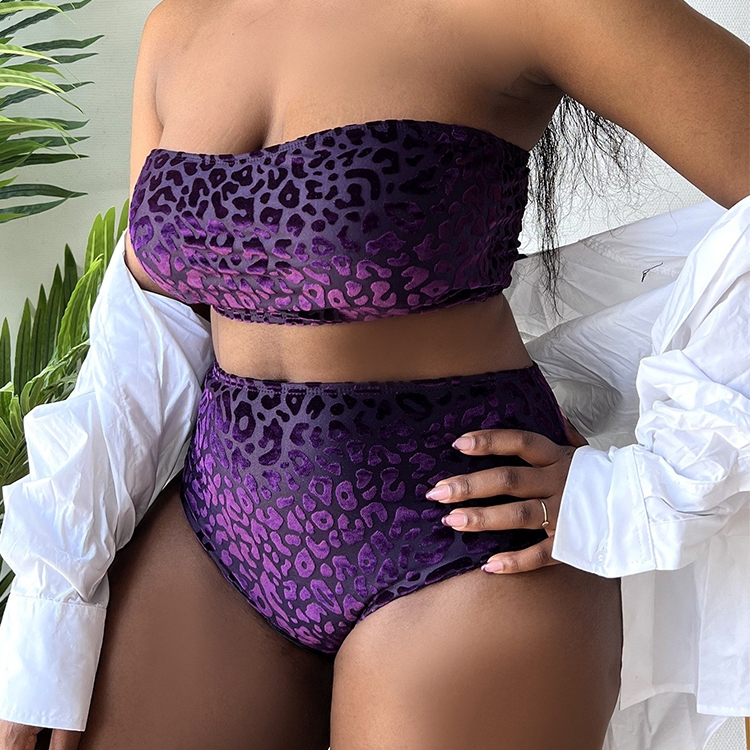 Plus-size Sexy Leopard Print High Waist Two Piece Bikini Swimsuit