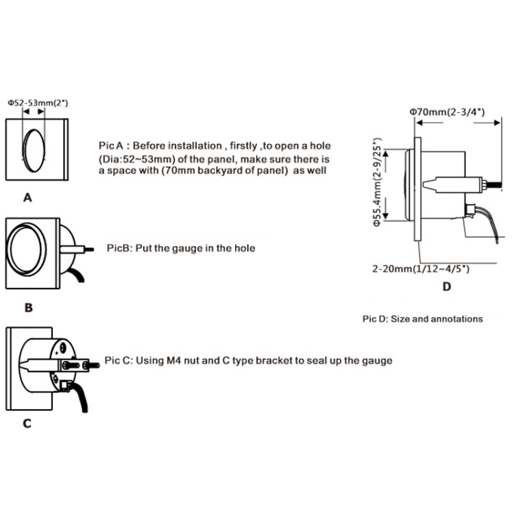 8. Wiring: red wire to the positive power supply, blue wire to the negative power supply, black signal wire to the sensor, orange wire backlight wire to the positive power supply