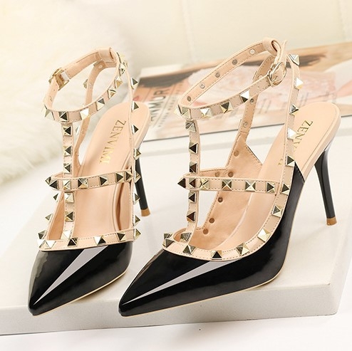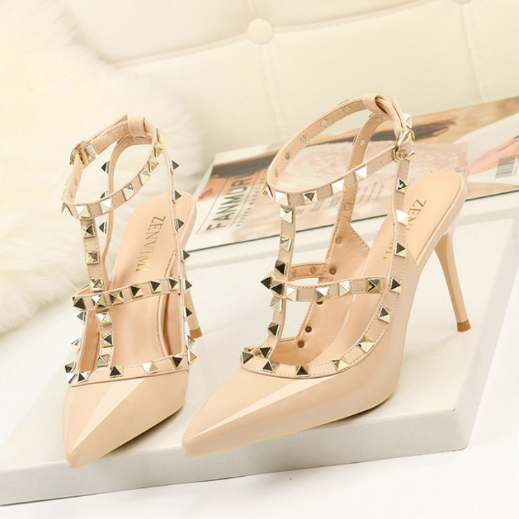 Pointed Stiletto Rivets Shallow Mouth High Heels