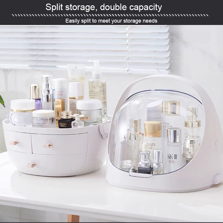 Portable Dust-proof Transparent Round Cosmetic Drawer Type Storage Box