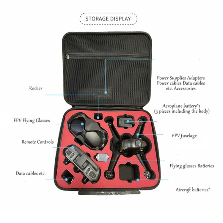 1. Multi-function large-capacity storage box for DJI FPV mainframe, and other related accessories.