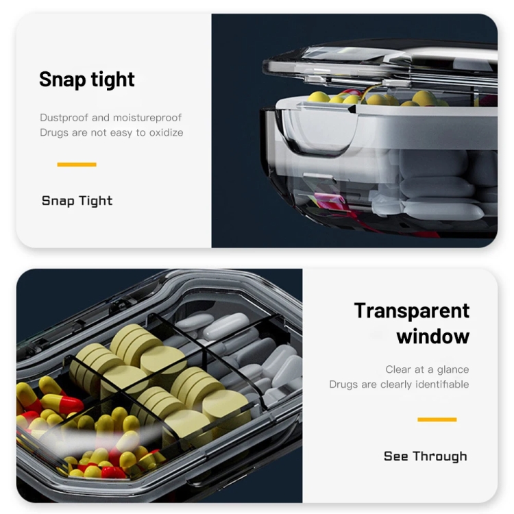 6. Transparent visual box body, medication is clearly identifiable, easy to determine whether to take medication, two capacity options, scientific use of medication, can be selected according to the actual travel situation