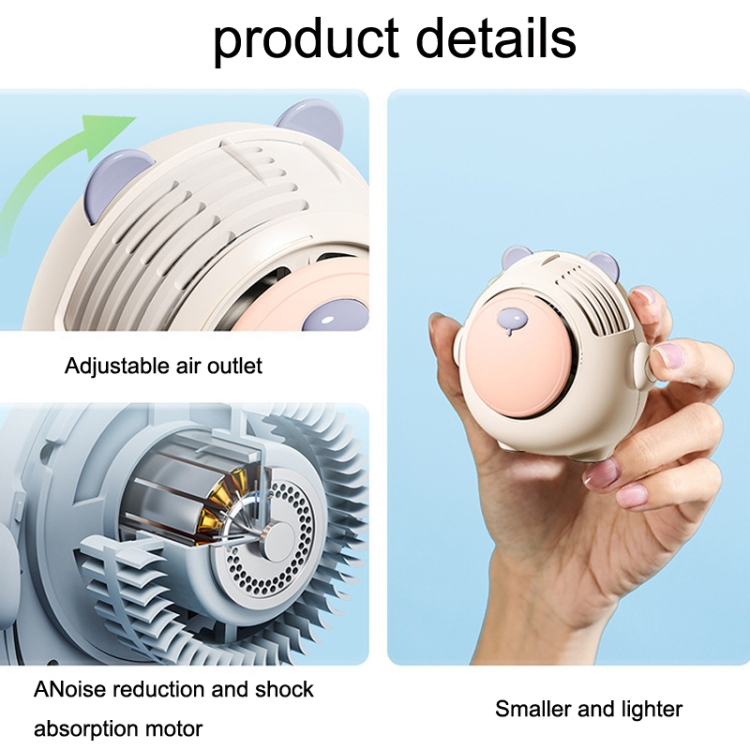 Portable Mini Hanging Neck Fan Cartoon Mute Handheld Lanyard Leafless Fan