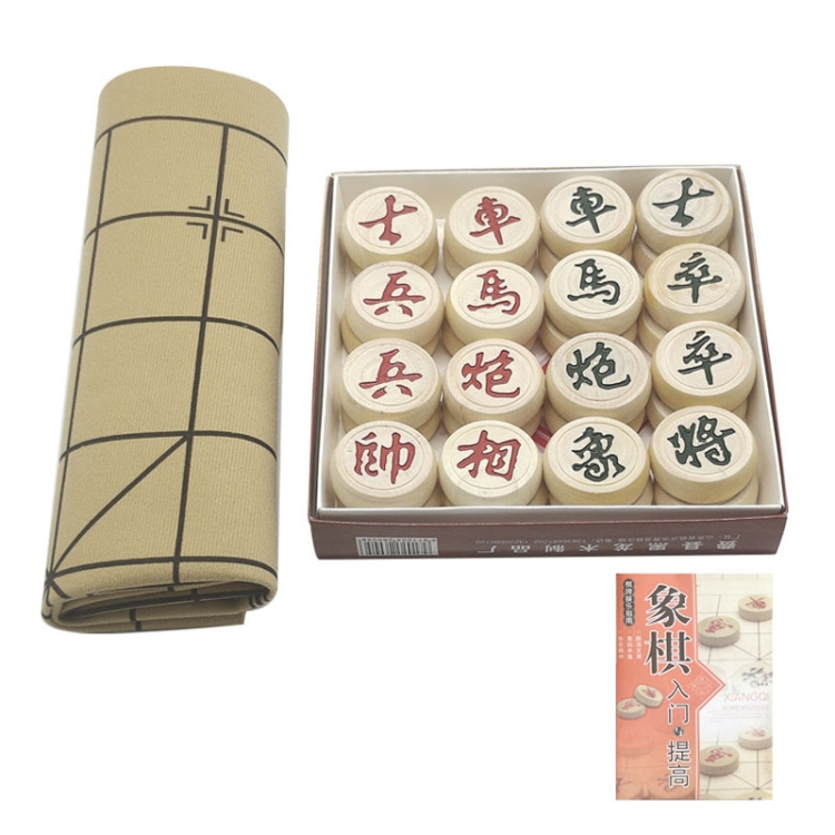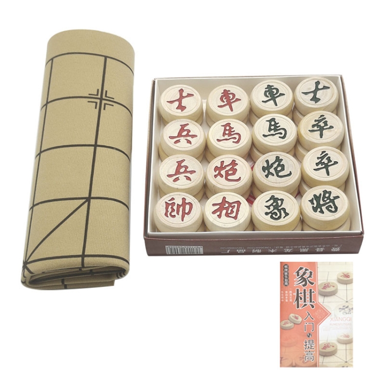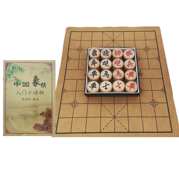 Portable Solid Wood Chinese Chess Adult Gift Student Chess Set With Leather Chess Board