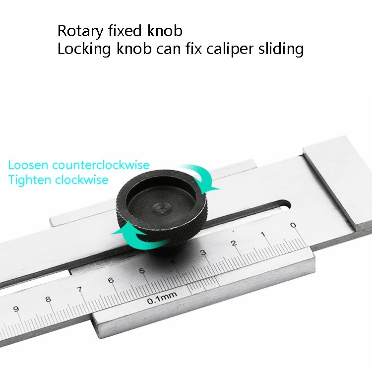 4. Rotating fixed knob, locking knob can fix caliper sliding