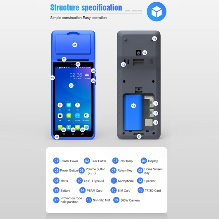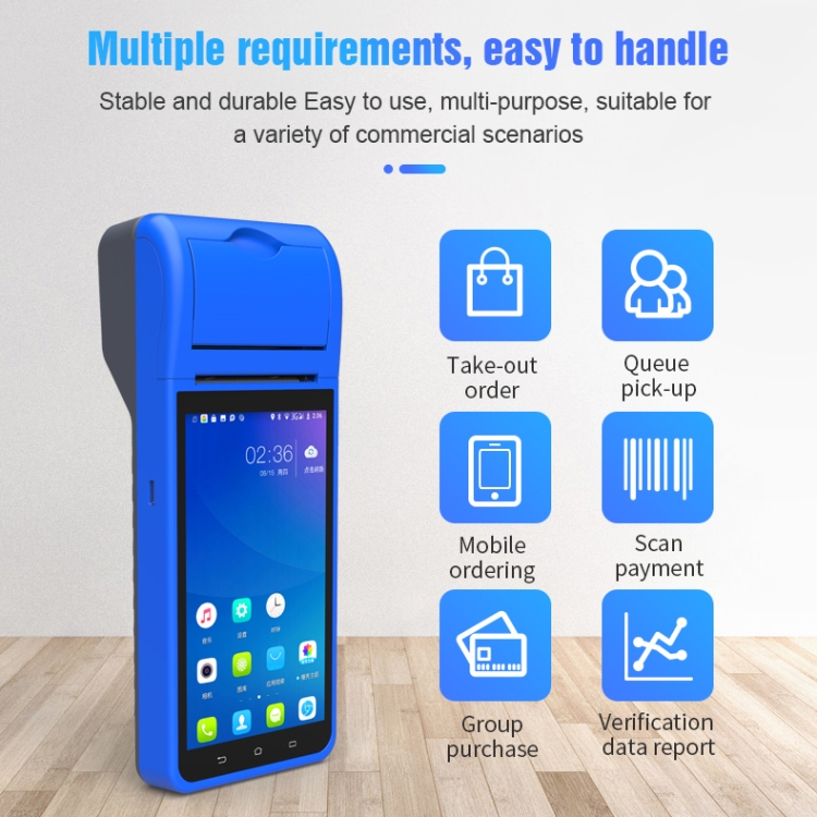 POS-6000 4G Version 2GB+32GB 58mm PDA Handheld 5.5 inch Barcode Two-dimensional Code Android Smart Scan Code Cash Register Thermal Printing Machine, US Plug