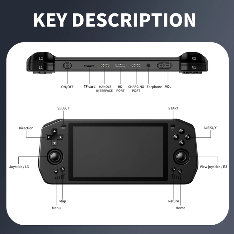 Number of buttons: 18 physical buttons: 1x power button, 1x volume +, 1x volume -, 1x (A, B, X, Y), 1xSE button, 1xST button, 1x direction button, 1xG button, 1x menu button, 1x return button, 1x HOME, 1x (R1 R2, L1 L2), 2x joystick (joystick supports press function)