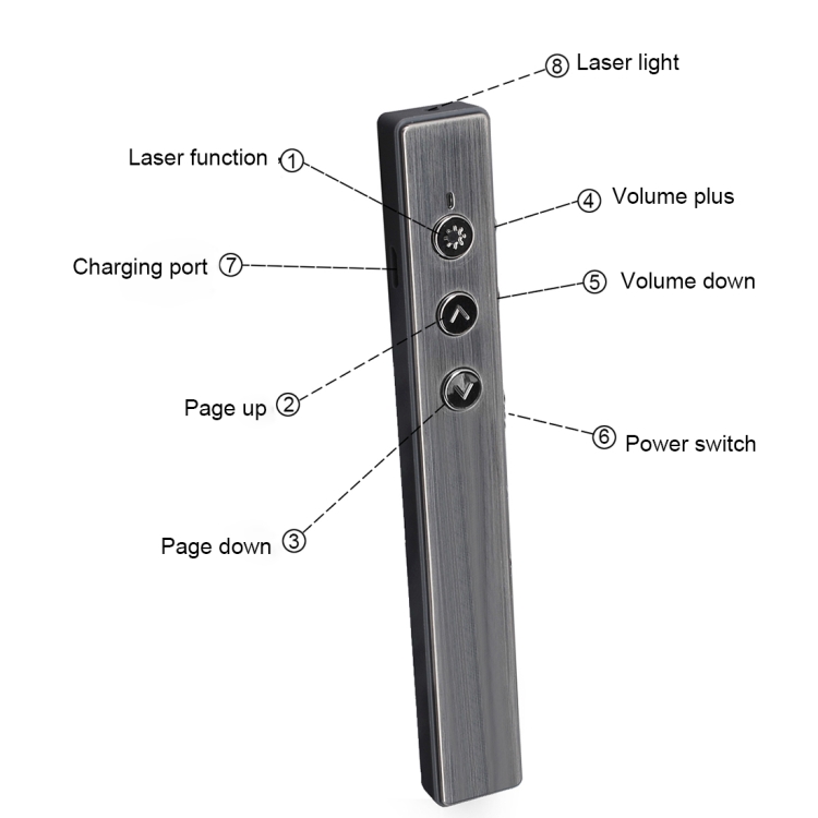 3. Page up / page down, volume plus / volume minus, laser presentation function.