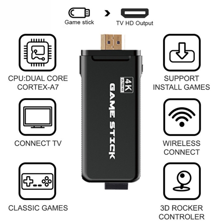 PS3000 64GB 4K Retro Game Stick with 2 Wireless Gamepads 10000+ Games Pre-installed