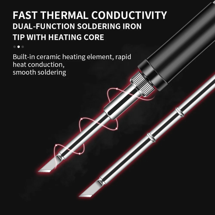 3. Fast heat conduction dual-function iron tip with heating core, built-in ceramic heating element, fast heat conduction, smooth soldering